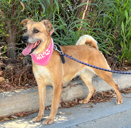 Lenkit ovat Monan mielestä parasta – hän kulkee nätisti hihnassa ja pysähtyy mielellään tutkimaan kiinnostavia tuoksuja. Mona tulee hyvin toimeen muiden koirien kanssa ja suhtautuu kissoihin uteliaasti, mutta ei kiinnitä niihin liikaa huomiota.